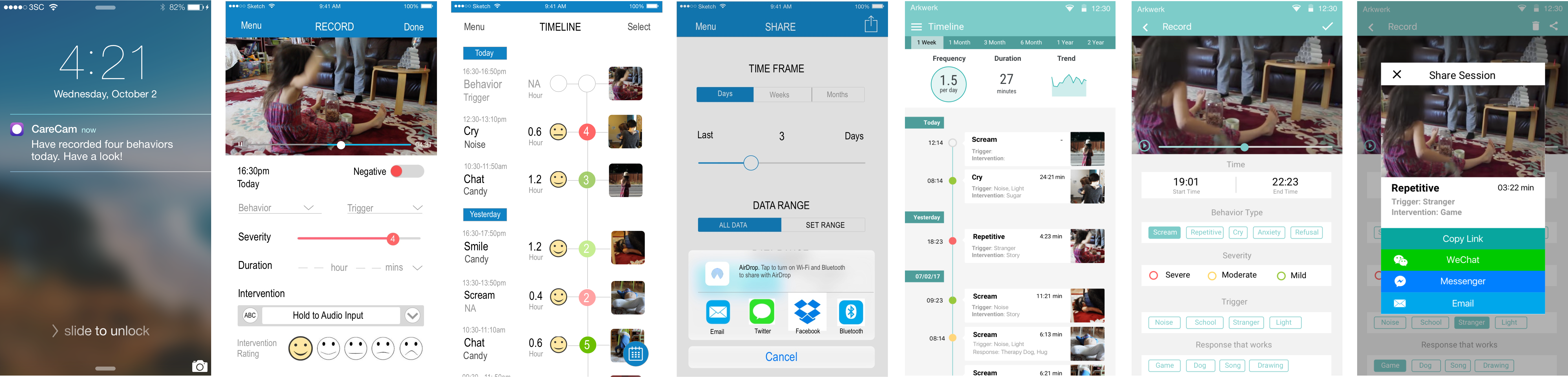 CareCam device can help parents record moments of negative behaviors. Then parents can input details. Our system can help parents analyze behavioral data and parents can share the data analysis with therapists, teachers, and other family members. After collaborating with therapists and teachers, they can better understand their children's behavioral patterns and take better care of their children.